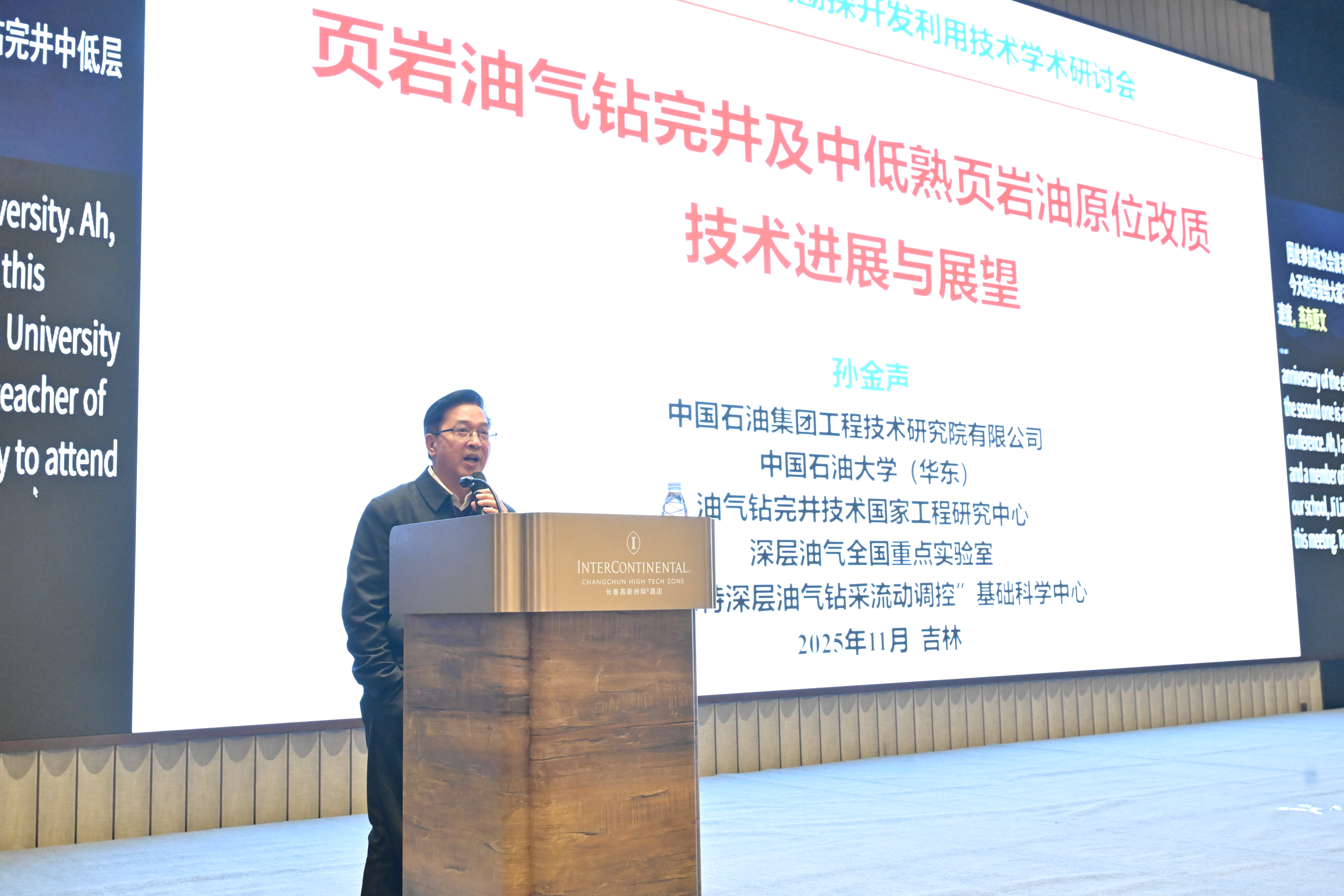 11月8日,中国工程院院士、中国石油天然气集团公司科学技术协会主席、中国石油国家卓越工程师学院院长、油气钻完井技术国家工程研究中心主任孙金声,出席第六届国际页岩油气勘探开发利用技术学术研讨会,并以“页岩油气钻完井及中低熟页岩油技术进展与展望”为题作鼎新讲座。吉林大学党委常委、副校长边铁为孙金声颁发“鼎新讲座纪念牌”。建设工程学院院长郭威主持大会。