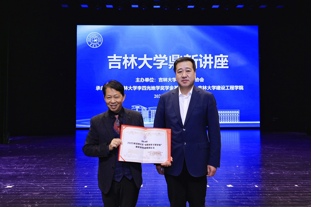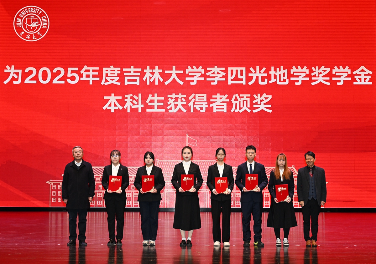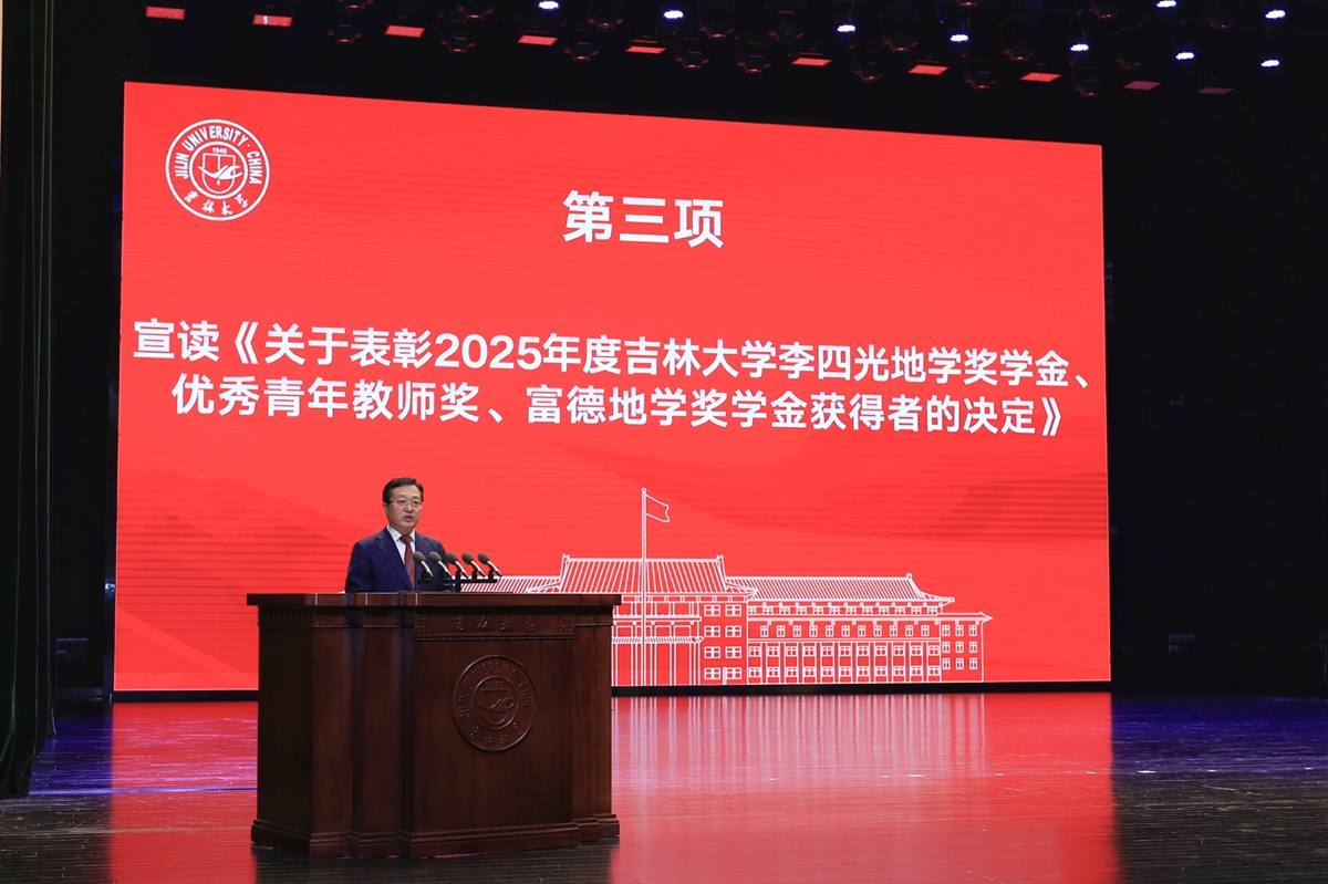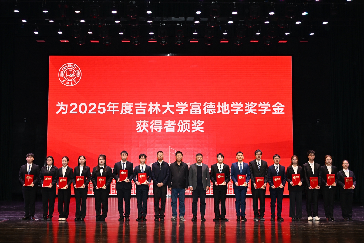 【文字/金光旭 建设工程学院 图片/王元辰】11月22日,2025年度吉林大学李四光地学奖学金、优秀青年教师奖和富德地学奖学金颁奖典礼在中心校区鼎新大讲堂举行。
