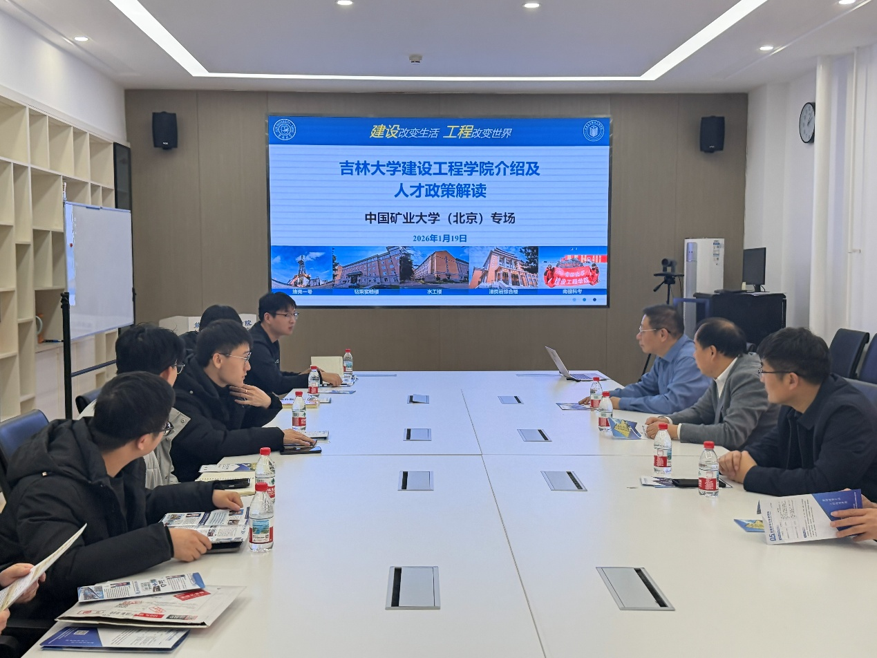 为深入贯彻落实学校“人才强校”战略,精准对接国家重点急需领域人才需求,1月18日,吉林大学建设工程学院党委书记杨洲、院长郭威带队,前往中国地质大学(北京)、中国矿业大学(北京)开展专场招聘宣讲暨人才见面会。招聘活动主要面向在读博士生、在站博士后等优秀青年人才,通过政策解读、深度交流、精准对接,搭建起人才合作的坚实桥梁。
